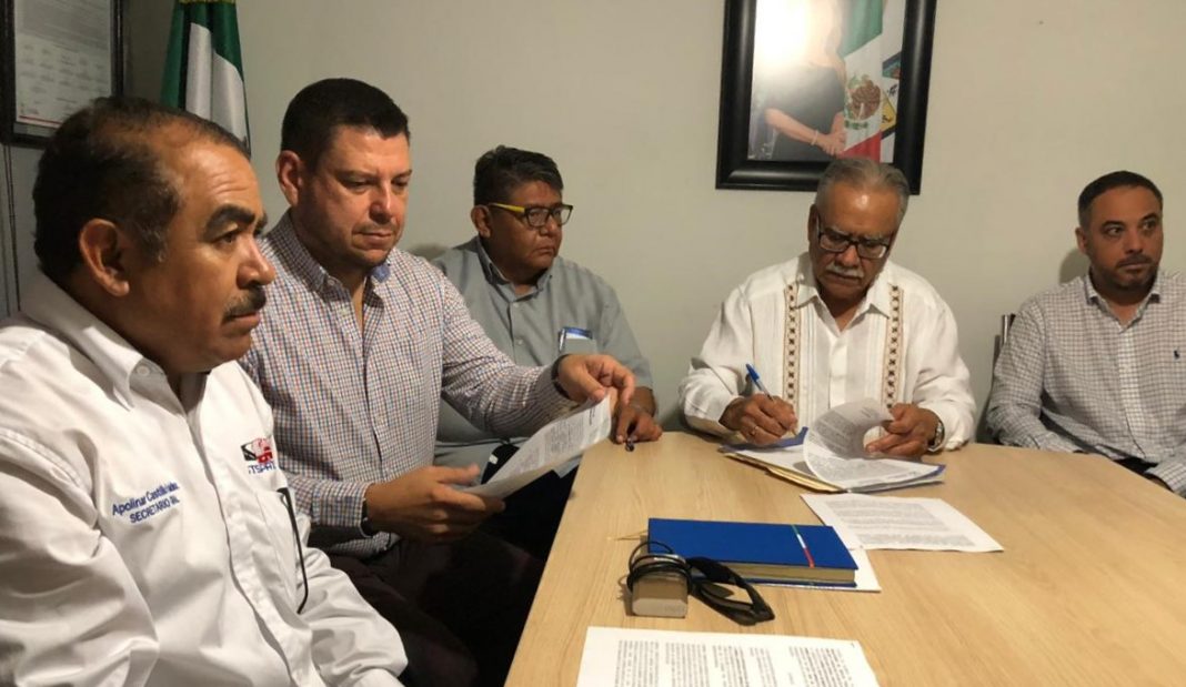 El secretario del Trabajo en Sonora presenció el convenio laboral pactado entre trabajadores del Servicio Público de Auto-Transportes, Similares y Conexos del Estado de Sonora CTM y la empresa Movilidad Integral de Hermosillo, S. A. de C.V., con el cual se evitó el estallamiento de huelga.
