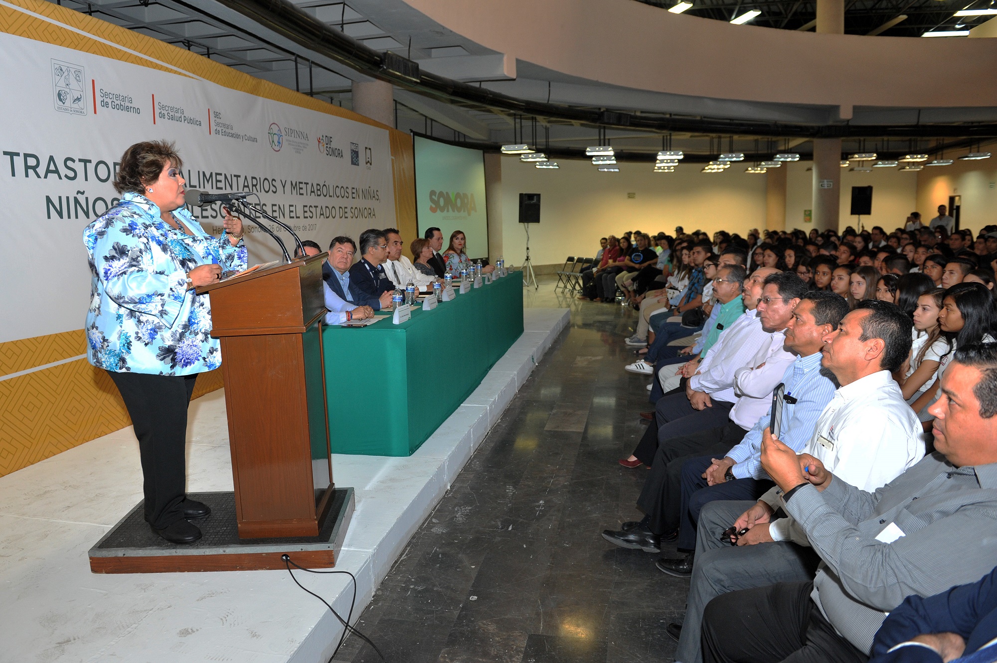 En el evento: Trastornos Alimentarios y Metabólicos en Niñas, Niños y Adolescentes, Blanca Aurora Camacho Sosa, Secretaria Ejecutiva del Sistema Estatal de Protección Integral de Niñas, Niños y Adolescentes (Sipinna), explicó que buscan llegar a jóvenes de secundaria, preparatoria, estudiantes de nutrición y sociedad civil y a su vez, ellos repliquen el mensaje.