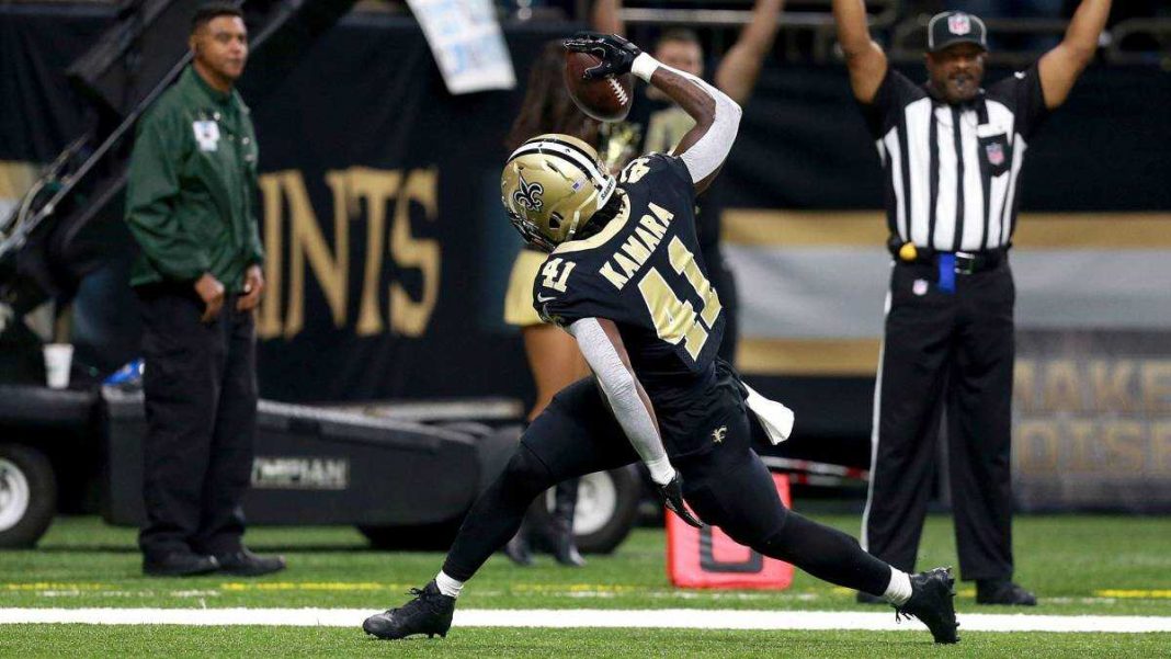 Kamara que ganó 45 yardas con un touchdown en el triunfo de los Santos, llegó al partido con 486 yardas terrestres en 104 acarreos y 648 yardas en 67 recepciones, por lo que impuso una marca de la National Football League (NFL).
