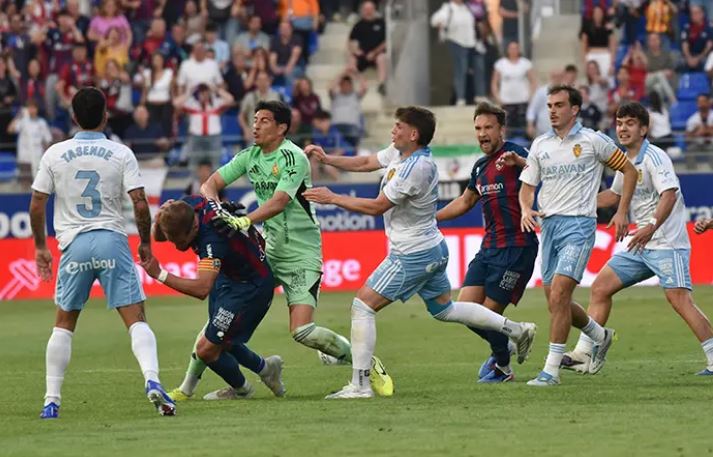 Con 1-0 en el marcador y en el minuto 99, Andrada fue expulsado por empujar a Pulido. Nada más ver la tarjeta roja, el argentino perdió el control y buscó al capitán del Huesca para propinarle un puñetazo en la cara, momento en el que hubo una multitudinaria tángana entre los jugadores en un final caótico que se saldó con varias tarjetas y más expulsiones.