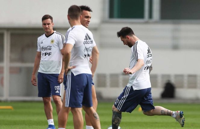 Con el desafío de encontrar fórmulas claras para romper el viernes en el estadio Maracaná la rocosa defensa de Venezuela, los responsables de la plantilla Albiceleste abrieron sus puertas al público mientras los jugadores se aplicaron en trabajos de coordinación en defensa y ataque.