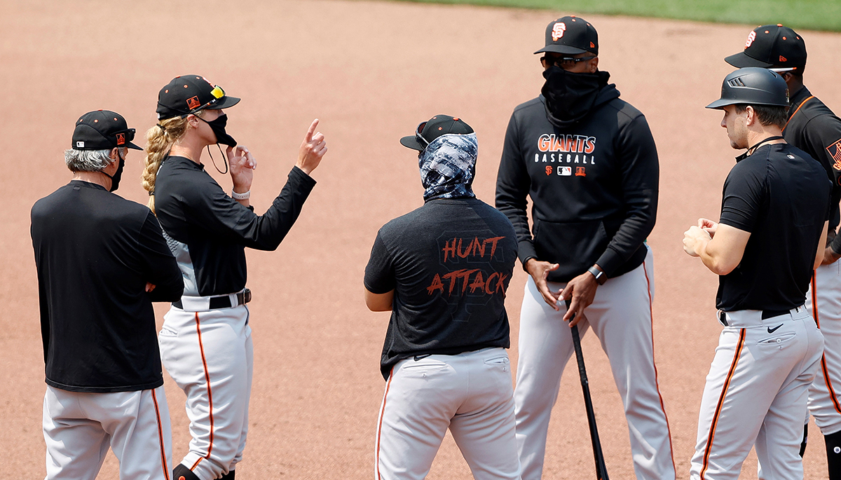 Aunque su labor cuando fue contratada el pasado 16 de enero como entrenadora asistente fue el  desarrollo de jugadores, el piloto de los Gigantes, Gabe Kapler, decidió darle la oportunidad de salir en el último episodio del partido a ocupar el puesto de entrenadora de primera base durante el partido que se disputó en el Coliseum de Oakland.