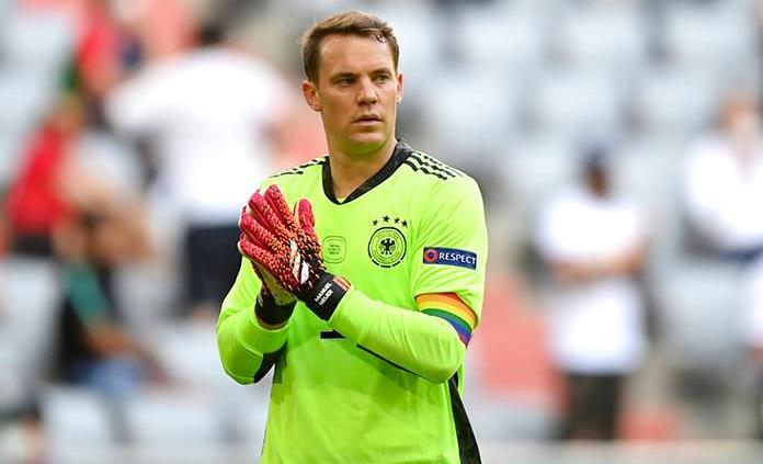 El meta y capitán de la selección alemana Manuel Neuer lleva, desde hace tres partidos, un brazalete con el arco iris, con el que la Federación Alemana de Futbol (DFB) ha querido mandar un mensaje a favor de la diversidad y los derechos de las minorías.