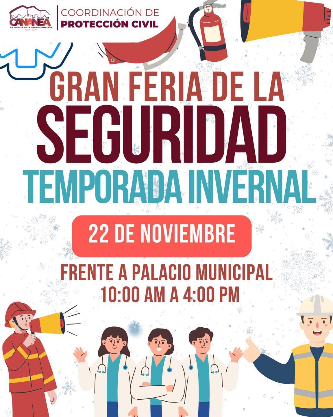 El Gobierno Municipal de Cananea informa que la Gran Feria de la Seguridad – Temporada Invernal será reprogramada para el 22 de noviembre, debido a las condiciones climatológicas previstas para esta semana.