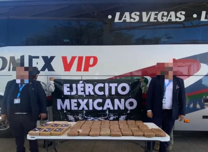 Elementos del Ejército Mexicano y de la Guardia Nacional aseguraron cocaína y goma de opio en un autobús de pasajeros que tenía como destino Estados Unidos; dos personas fueron detenidas.