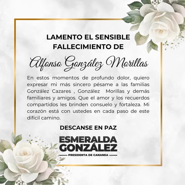 A la familia González Cazares, González Morillas y demás familiares y amigos, les expreso mi más sincero pésame y les envío mi solidaridad en este momento tan difícil.