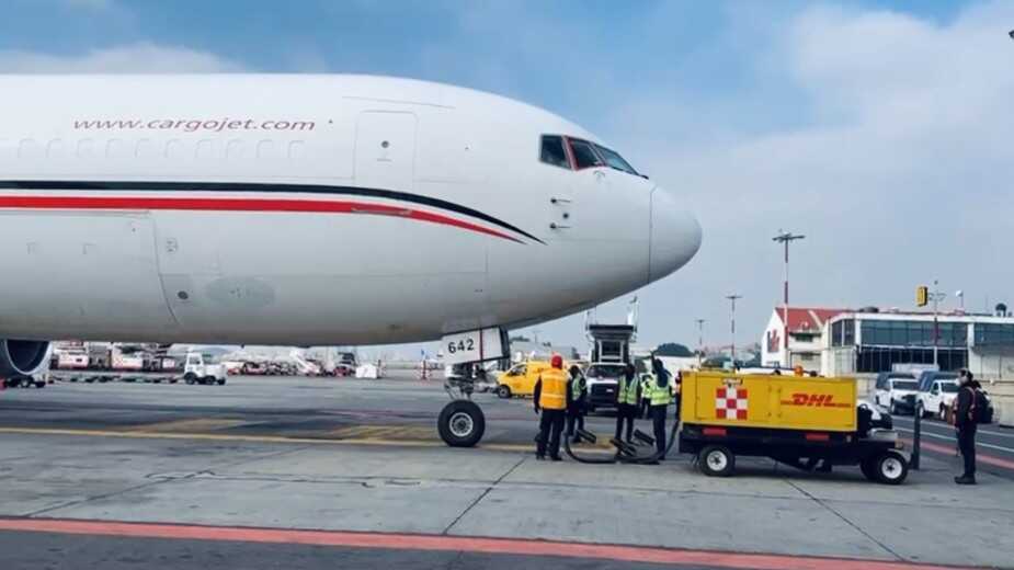 Este martes a las 9:25 h llegó a la terminal 1 del Aeropuerto Internacional de la Ciudad de México (AICM) “Benito Juárez”, el vuelo CJT952, procedente de Cincinnati, Estados Unidos con los biológicos.