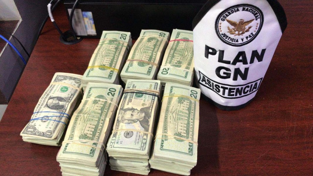 En el Aeropuerto Internacional de la Ciudad de México, elementos de la Guardia Nacional interceptaron a una persona quien trasladaba en su equipaje de mano, 65 mil 273 dólares estadounidenses los cuales no declaró ante la autoridad hacendaria.