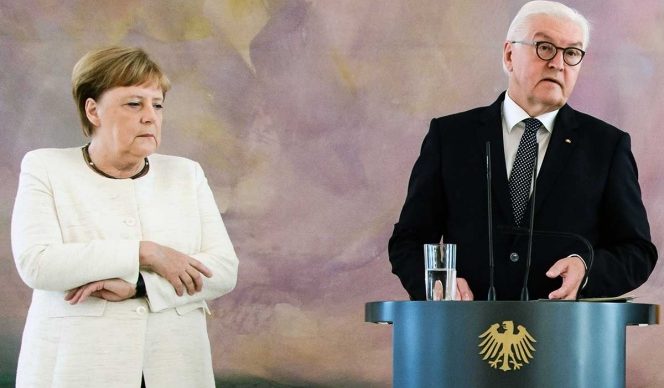 Merkel se encontraba en la sede de la Presidencia del país para asistir al acto de cese ante el jefe del Estado, Frank-Walter Steinmeier, de la ya exministra de Justicia alemana Katharina Barley, que se marcha a Bruselas, y al nombramiento de su sucesora, Christine Lambrecht.