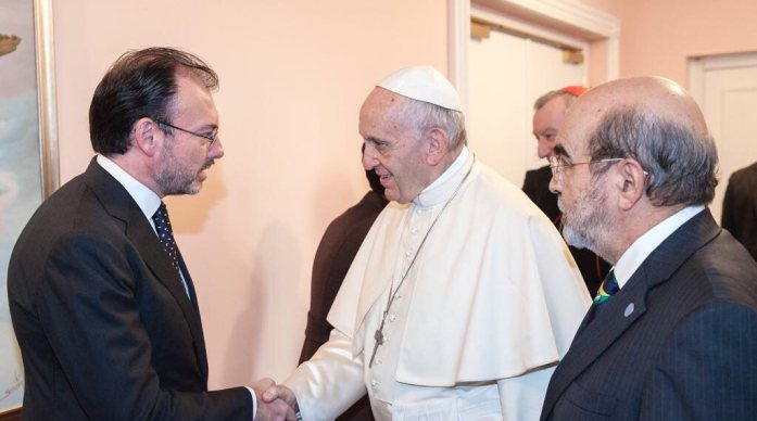 El secretario de Relaciones Exteriores de México, Luis Videgaray Caso, agradeció hoy personalmente al Papa Francisco por su cercanía y el cariño demostrado hacia México durante los sismos de septiembre pasado.